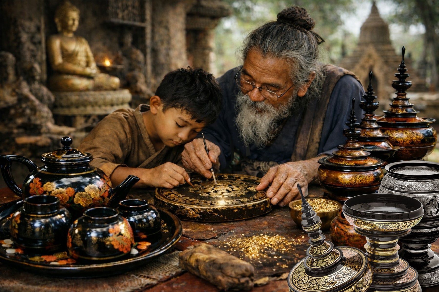 "For over 700 years, the ancient city of Bagan has been the soul of Burmese lacquerware. From the spiritual offerings in pagodas to the tables of royalty, this revered craft, known as Yun De, has been an inseparable thread in the fabric of our culture. Using the sap of the Thitsi tree and techniques passed from parent to child, artisans create pieces that are built to last for generations."